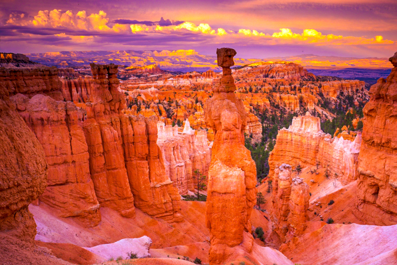 Juste pour vous mettre l'eau à la bouche et planter le décor, sachez que le National Park Service (NPS), qui gère le patrimoine national américain, a élu Bryce Canyon comme étant le plus beau parc national des États-Unis... Quand on a dit ça, on a presque tout dit. Et quand vous serez à Sunrise Point pour admirer le lever de Soleil, vous vous direz qu'ils n'ont pas tort... Dans ce parc, vous rencontrerez des "Hoodoos" par centaines et resterez longtemps à vous demander comment la nature a-t-elle bien pu créer ce merveilleux spectacle...
