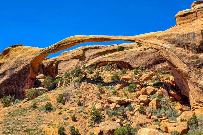 Au bout d'un kilomètre et demi, on atteint Landscape Arch, la plus grande arche du parc et d'Amérique du Nord.