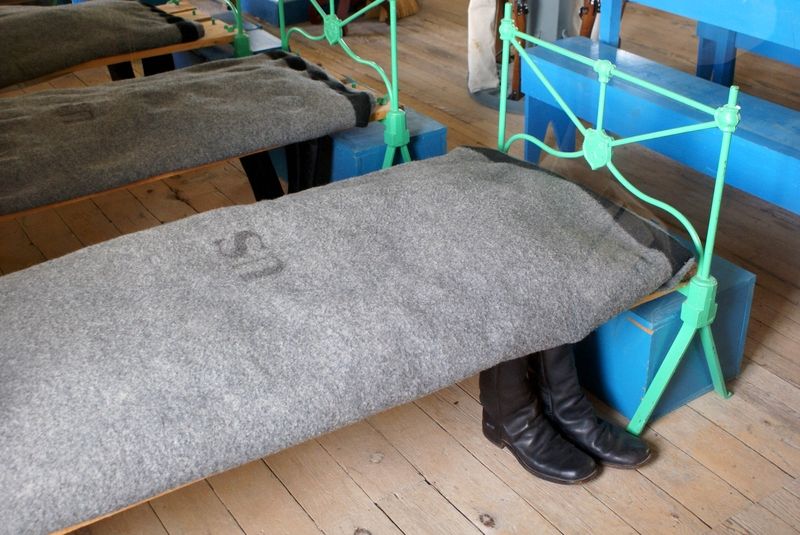Ancienne boulangerie du fortChambrée dans le bâtiment de la CavalerieBâtiment de la CavalerieEquipements dans la chambrée du bâtiment de la CavalerieBâtiment de la CavalerieChambrée dans le bâtiment de la CavalerieLes cellules sont à l'arrièrePorte d'entrée des cellulesIntérieur de la prison avec cellule d'isolementBureau du ColonelVue arrière du logement du CapitaineVue intérieure du logement du CapitaineRuines de l'hôpital du FortFosse "septique" d'époque !Old Bedlam, un des plus anciens bâtiments du FortAncien bureau de posteVue générale du FortVue générale du Fort